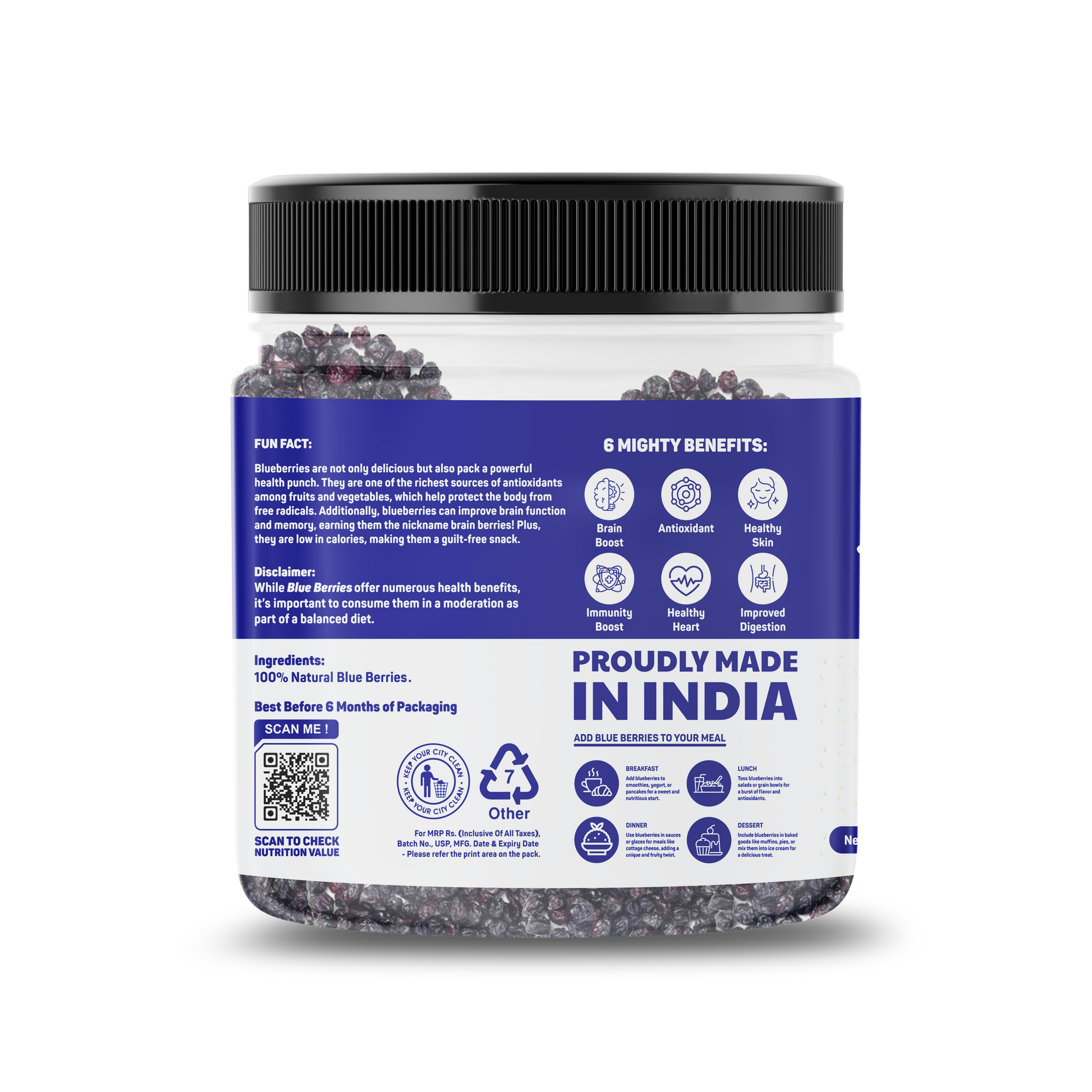 Enjoy fresh or dried as a snack, mix into cereals, yogurt, and salads, bake into muffins and pancakes, or blend into smoothies.