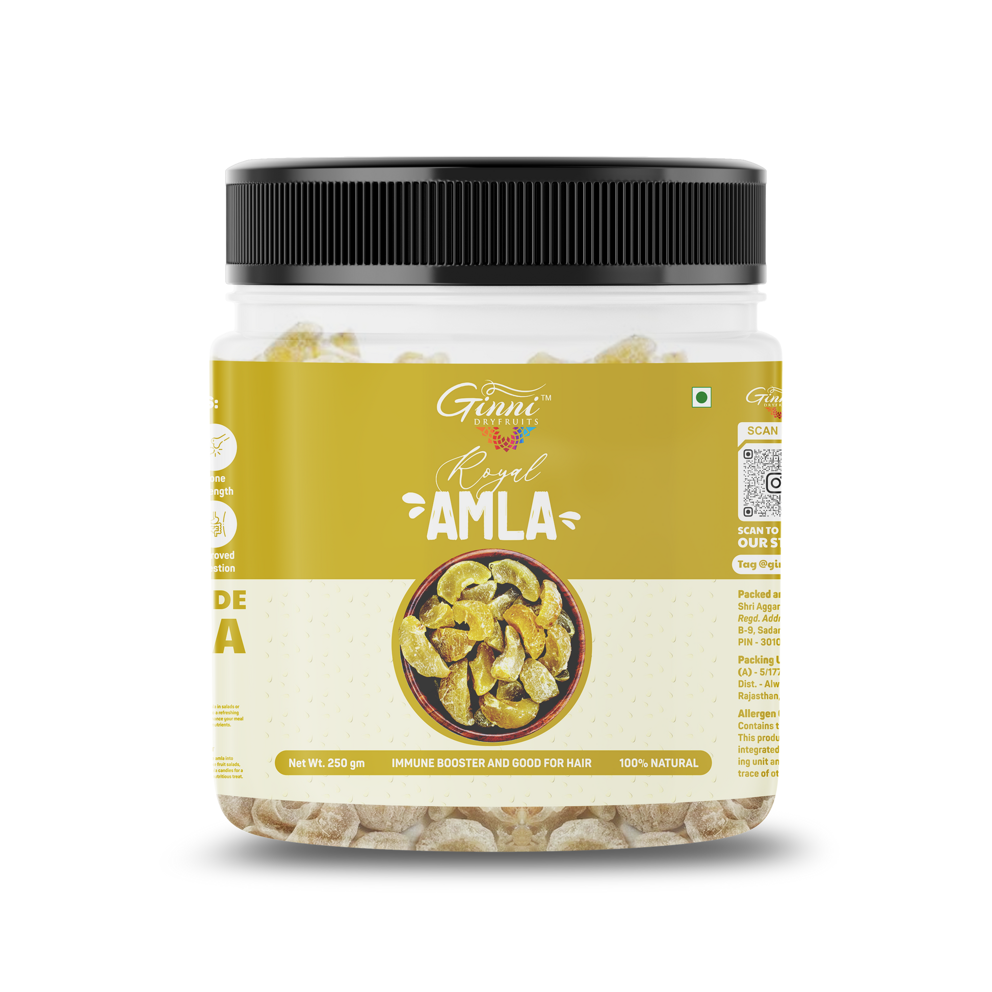 Enjoy dried amla as a healthy snack, or soak it in water overnight and consume in the morning. It can also be added to herbal teas, trail mixes, or chutneys.