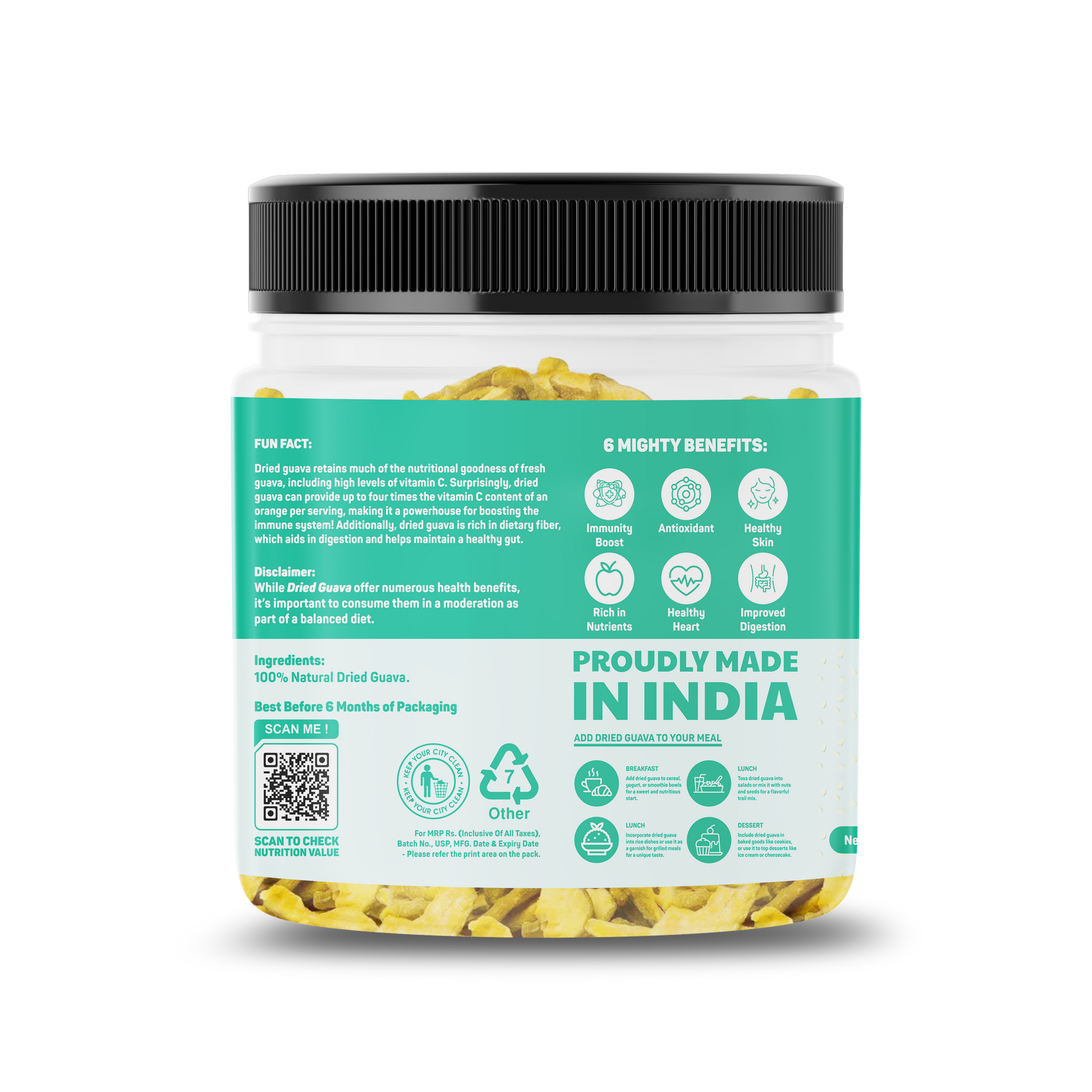 Dried Guava is a tropical, nutrient-rich snack made from ripe guavas that are gently dehydrated to preserve their natural sweetness and unique flavor. These chewy slices are slightly tangy, mildly sweet, and packed with vitamins, especially Vitamin C and dietary fiber. Dried guava is a wholesome treat that supports digestion and boosts immunity—perfect for on-the-go snacking or adding to your favorite dishes.