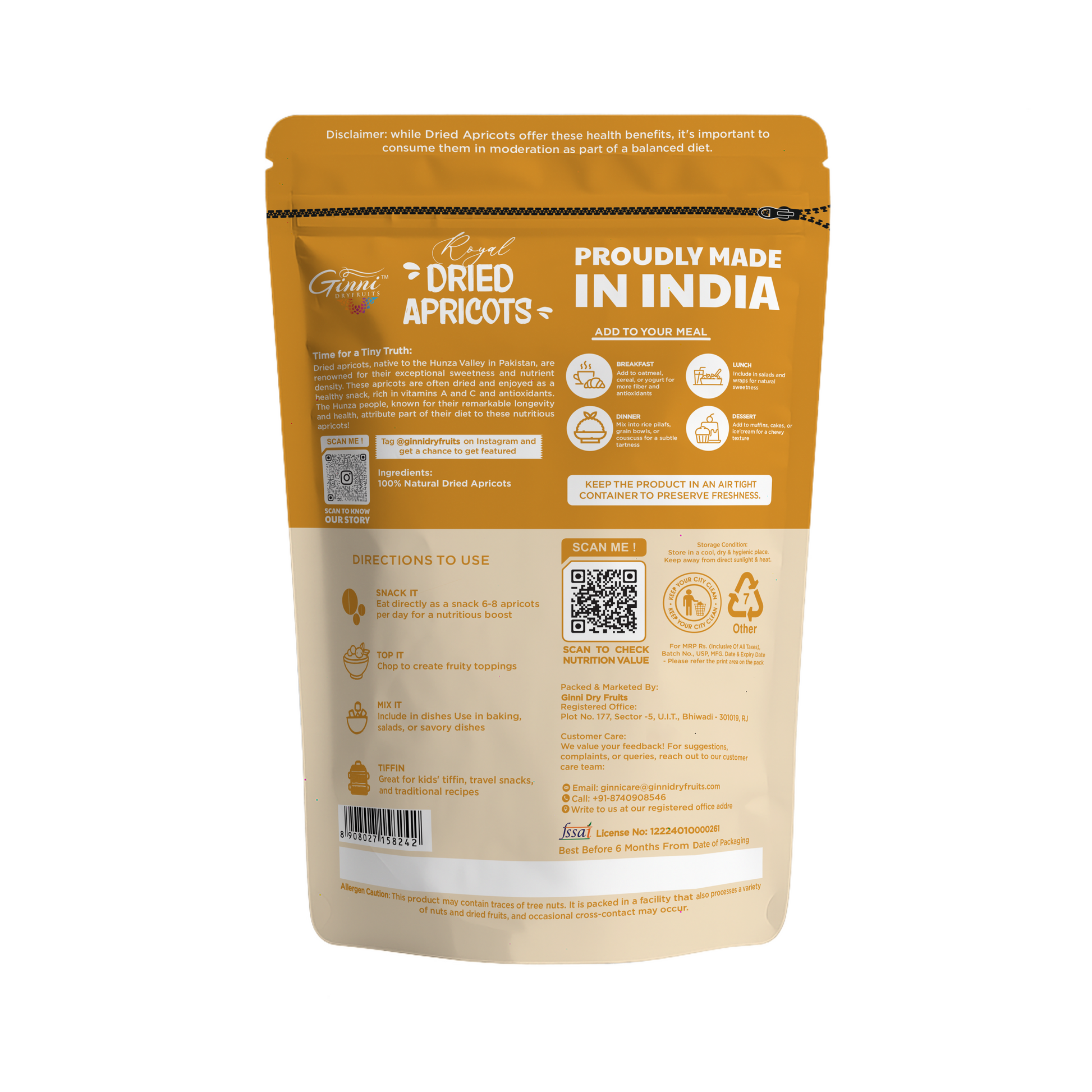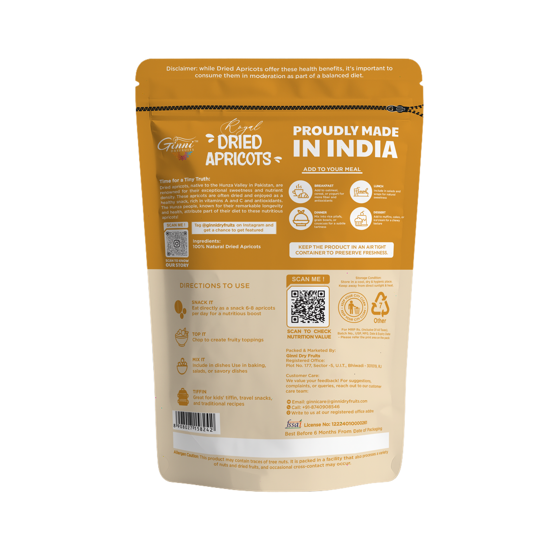 Delight in the naturally sweet and tangy taste of our premium Dried Apricots, carefully selected and dried to preserve their flavor and nutrients. Perfect for snacking, adding to cereals, smoothies, or desserts, they offer a delicious and wholesome treat.