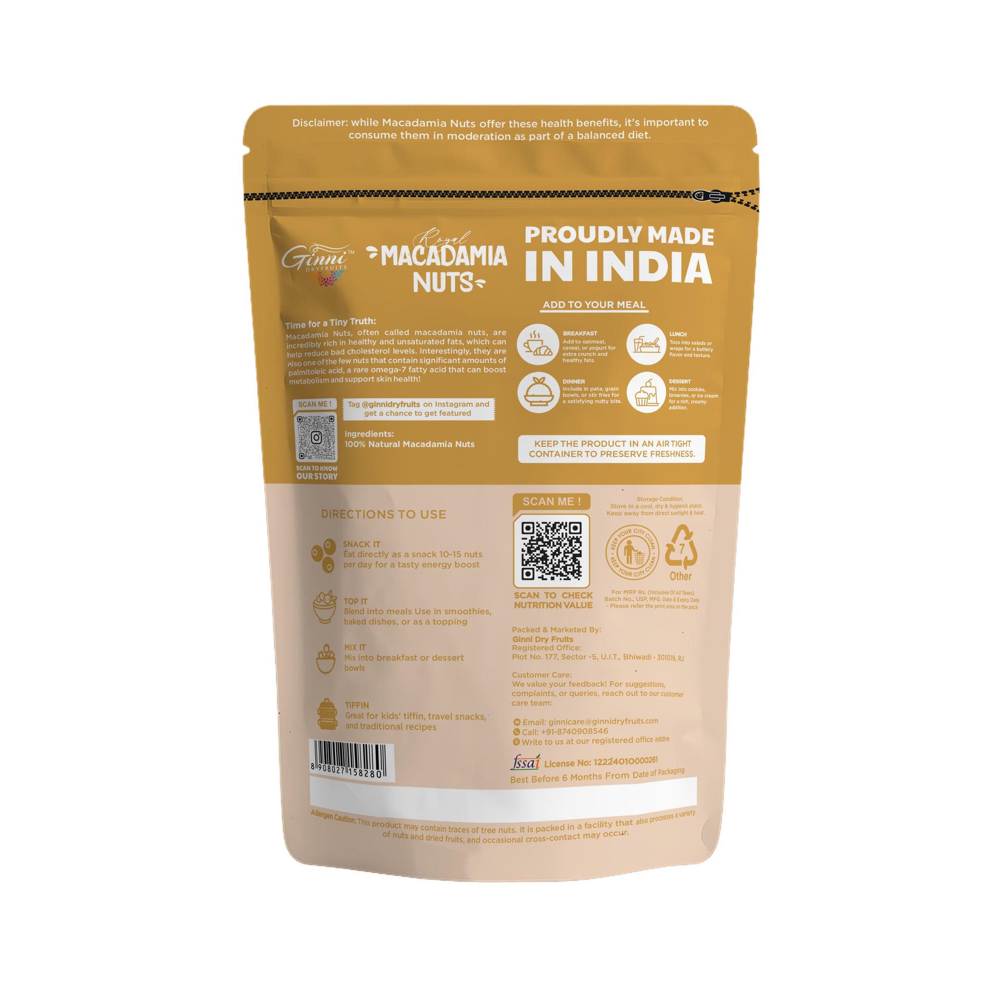Indulge in the rich, buttery flavor of our premium Macadamia Nuts, carefully selected for quality and freshness. Packed with healthy fats, protein, and essential nutrients, they make a luxurious and wholesome snack or a delicious addition to your favorite recipes.