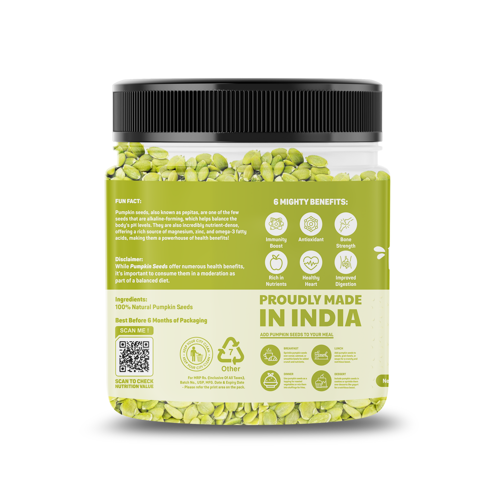 Pumpkin Seeds, also known as pepitas, are flat, green seeds with a naturally nutty flavor and satisfying crunch. Sourced from premium pumpkins, these seeds are packed with protein, healthy fats, and essential minerals. Whether raw or roasted, pumpkin seeds make a wholesome snack and a nutritious boost to a variety of meals and recipes.
