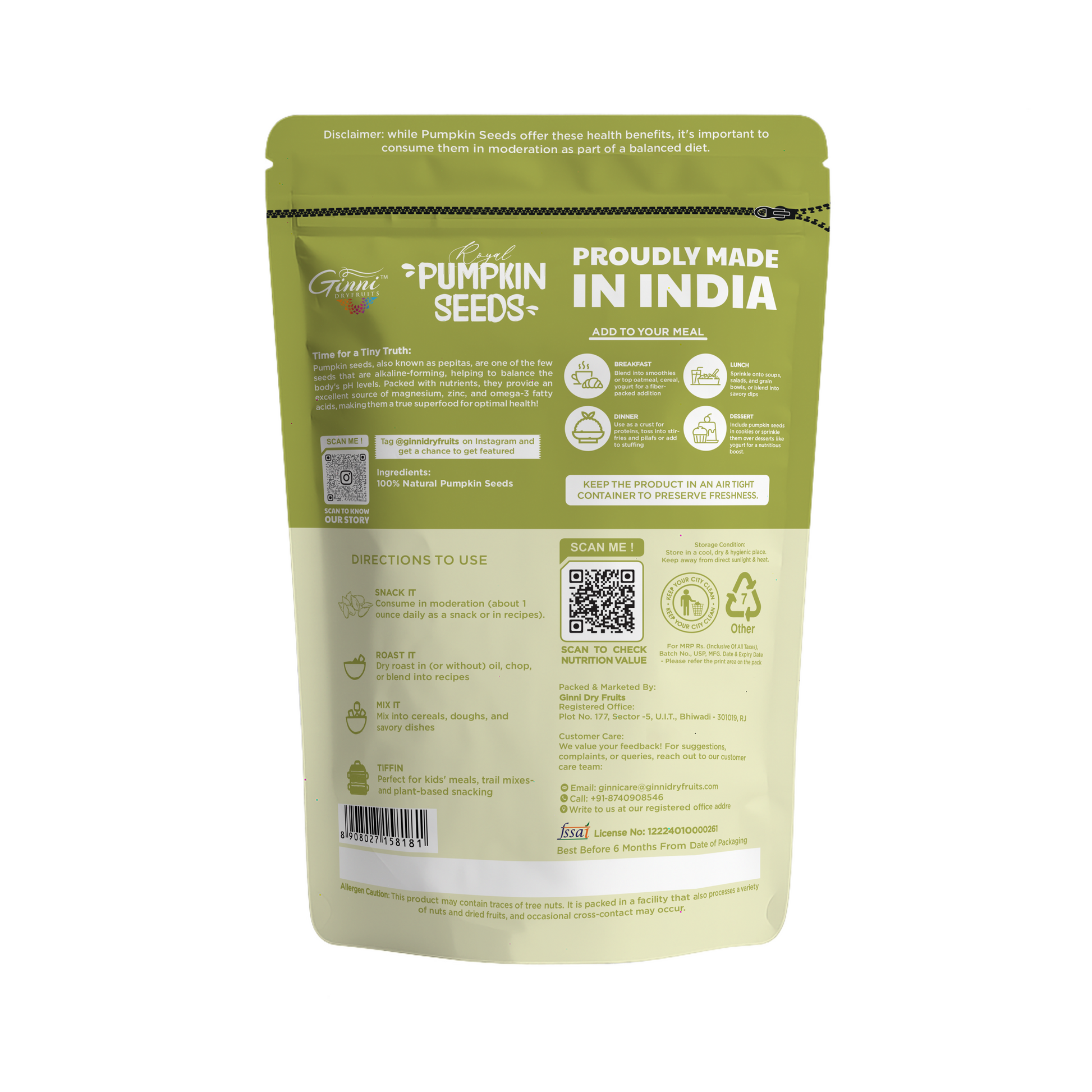 Savor the crunchy, nutty goodness of our premium Pumpkin Seeds, carefully selected to retain their natural nutrients and freshness. Packed with protein, healthy fats, and essential minerals, they make a wholesome addition to your diet. Perfect for snacking, adding to salads, cereals, or smoothies, they combine taste and health effortlessly.