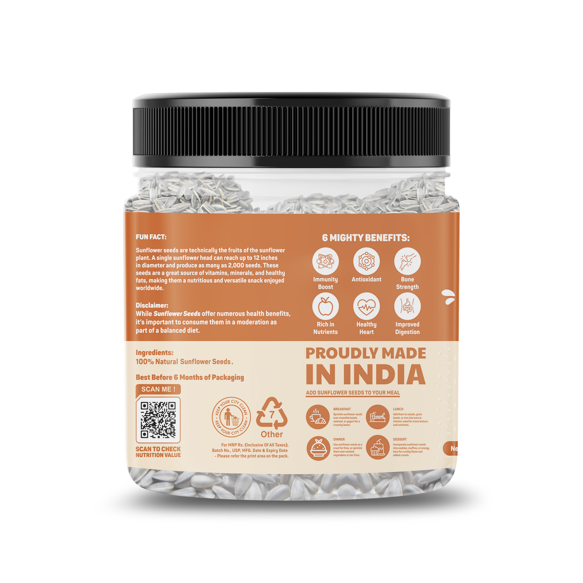 Enjoy as a crunchy snack, sprinkle over salads or yogurt, mix into granola or trail mixes, or add to baked goods like bread and muffins.