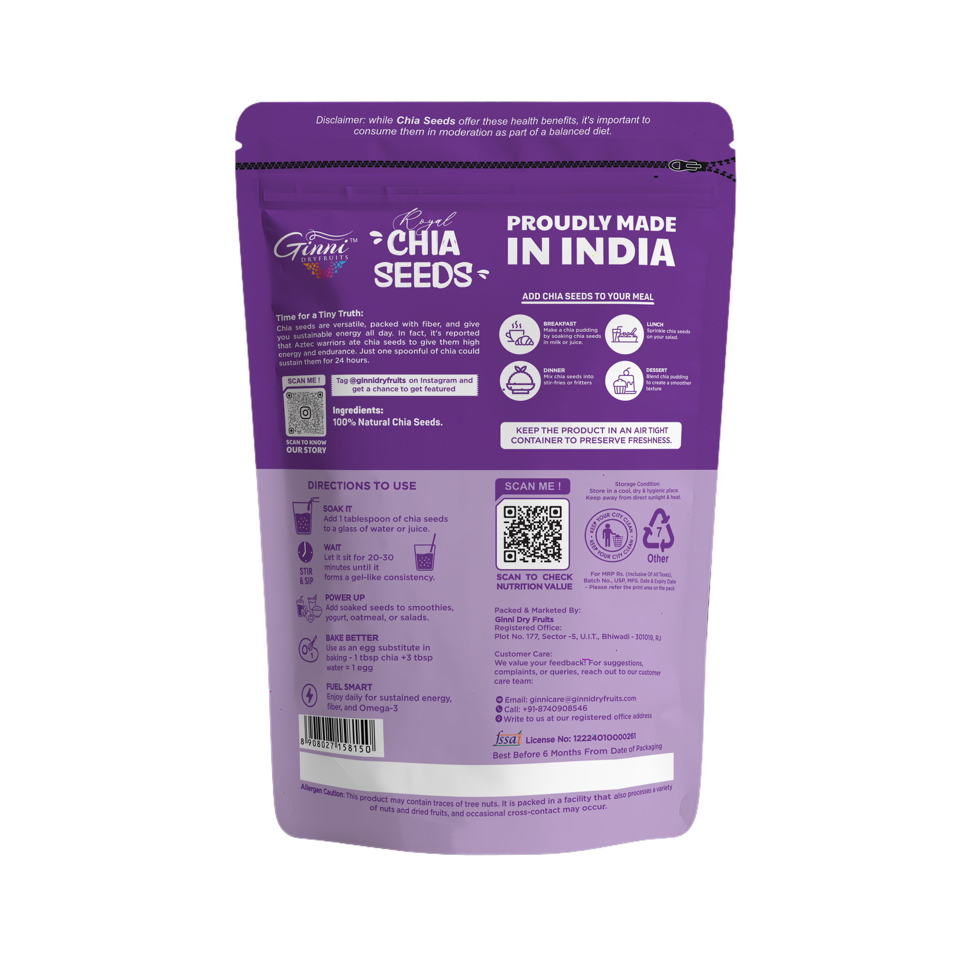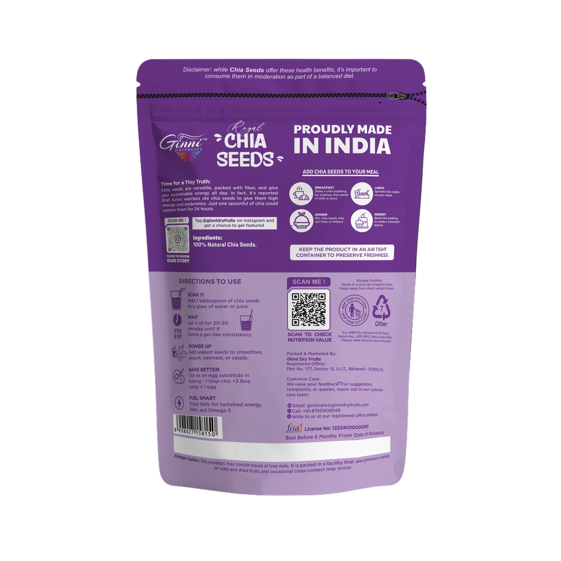 Unlock the power of our premium Chia Seeds, carefully selected to retain their natural nutrients and quality. Packed with omega-3 fatty acids, fiber, and antioxidants, they make a nutritious addition to your daily diet. Perfect for sprinkling over smoothies, yogurts, cereals, or enjoying as a healthy snack, they combine taste and wellness effortlessly.